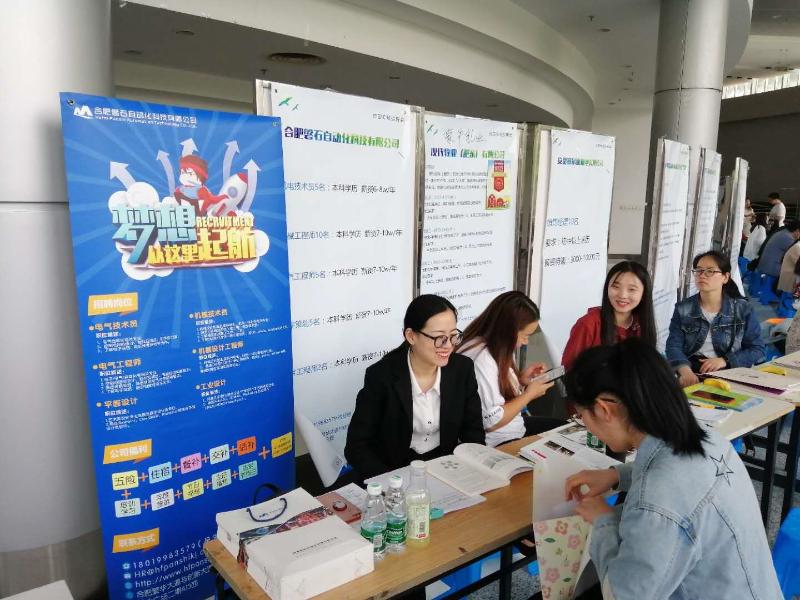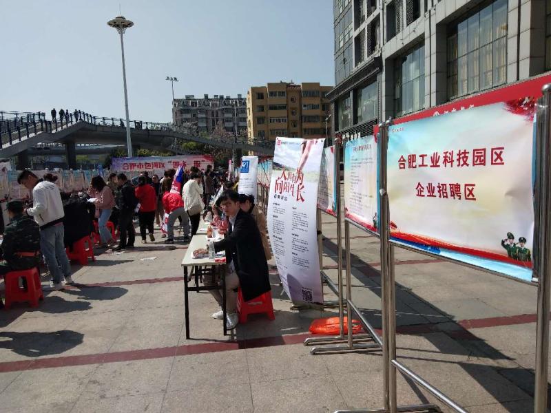 为解决入园企业用工难题,工业科技积极开拓招聘渠道,帮助企业解决各层次人才需求。2019年4月,工业科技组织入园企业分别参加了包河区主办的“四送一服”暨“就业起航”退役士兵专场招聘会和庐阳区主办的“招才引智四送一服”暨人社局进校园公益性专场招聘会(南京理工大学)。