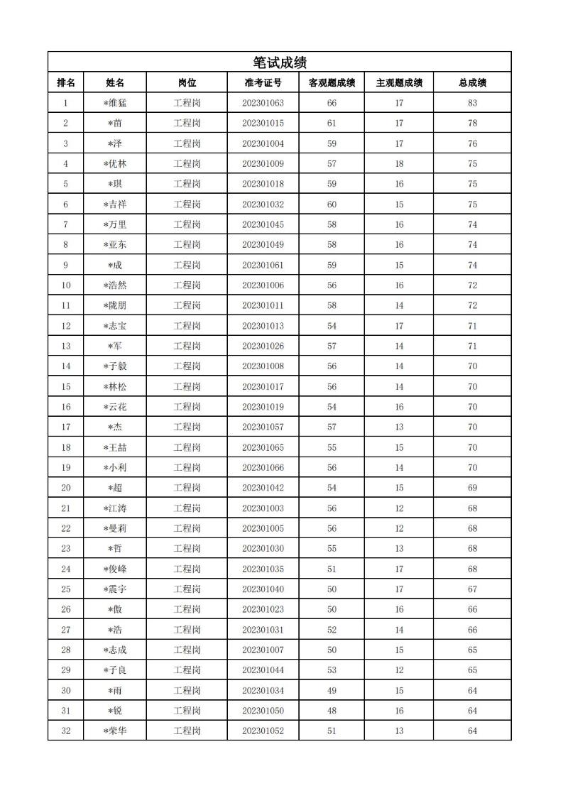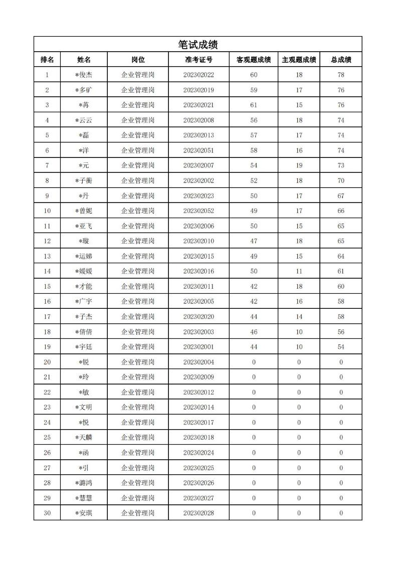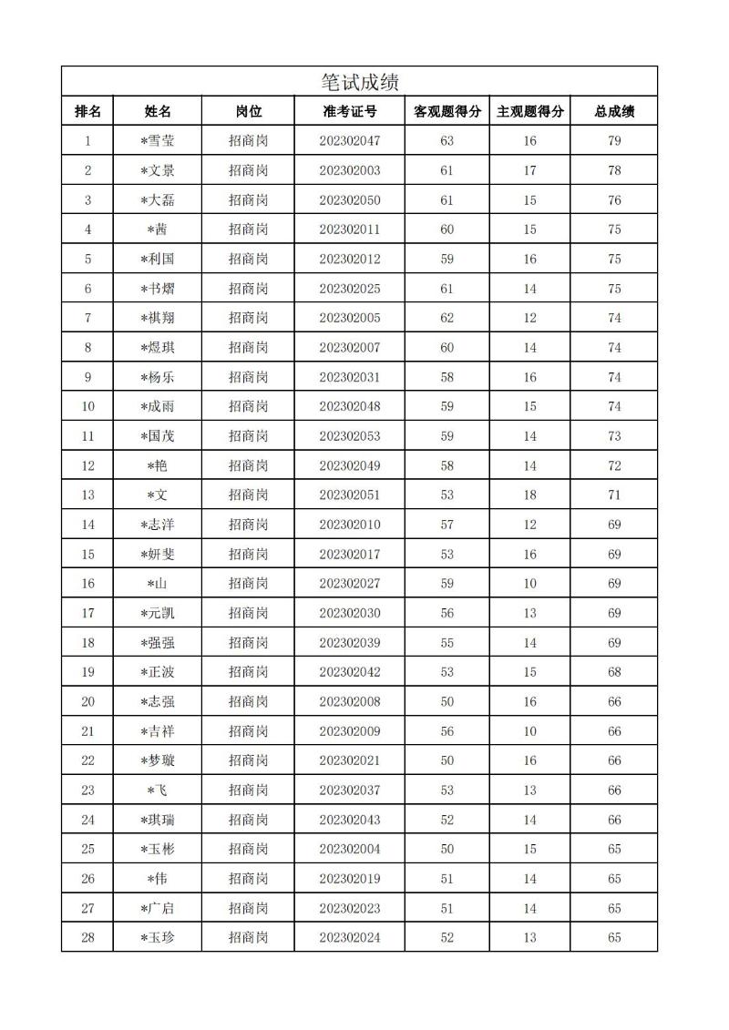 合肥工投工业科技发展有限公司2023年春季招聘笔试成绩公示
