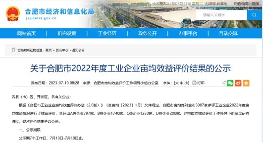 近日,《关于合肥市2022年度工业企业亩均效益评价结果》公示,工业科技27家园区企业获亩均效益评价A、B级,其中英腾嘉科技、大千生物、元琛环保等16家拟定A级,汉帮家具、深朝电子等11家拟定B级。