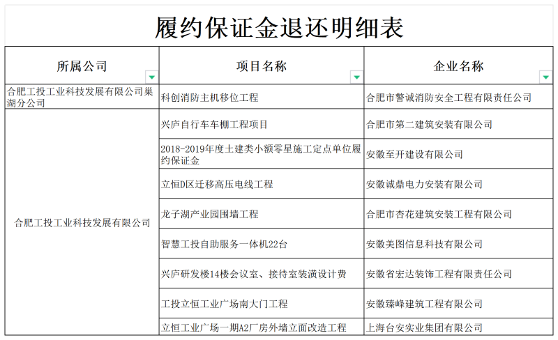 为贯彻落实《合肥市清理规范工程建设领域保证金专项整治行动作方案》要求,对符合退还条件的履约保证金做到应退尽退。