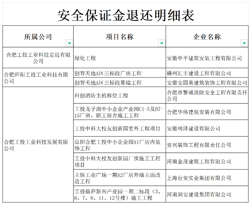 为贯彻落实《合肥市清理规范工程建设领域保证金专项整治行动作方案》要求,对符合退还条件的安全保证金做到应退尽退。
