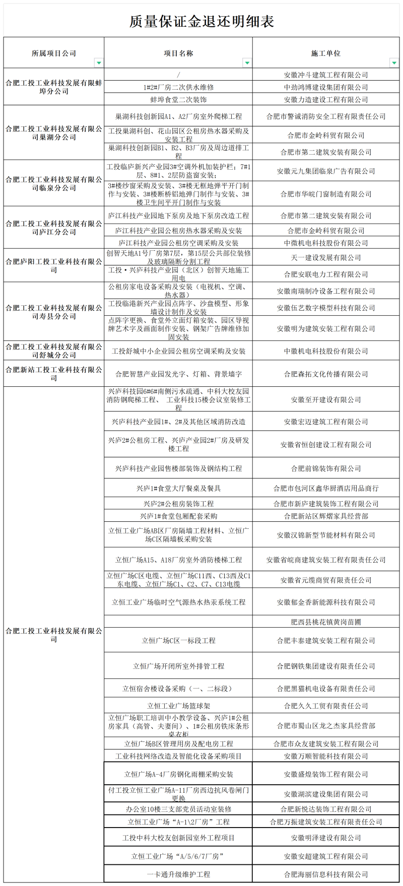 为贯彻落实《合肥市清理规范工程建设领域保证金专项整治行动作方案》要求,对符合退还条件的质量保证金做到应退尽退。