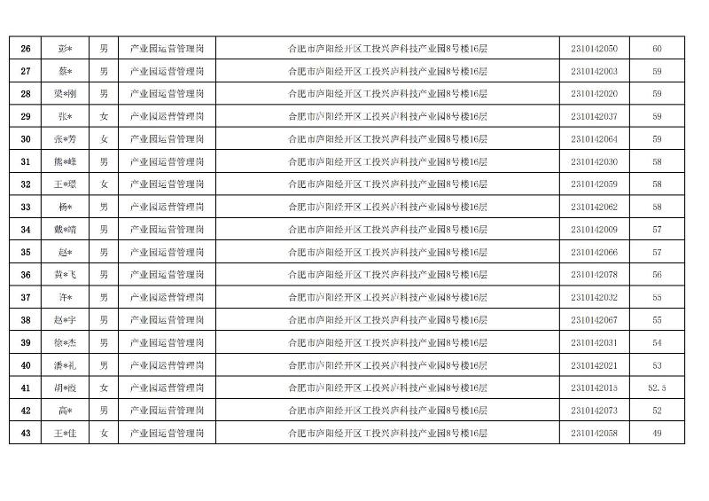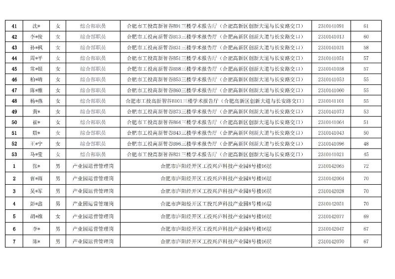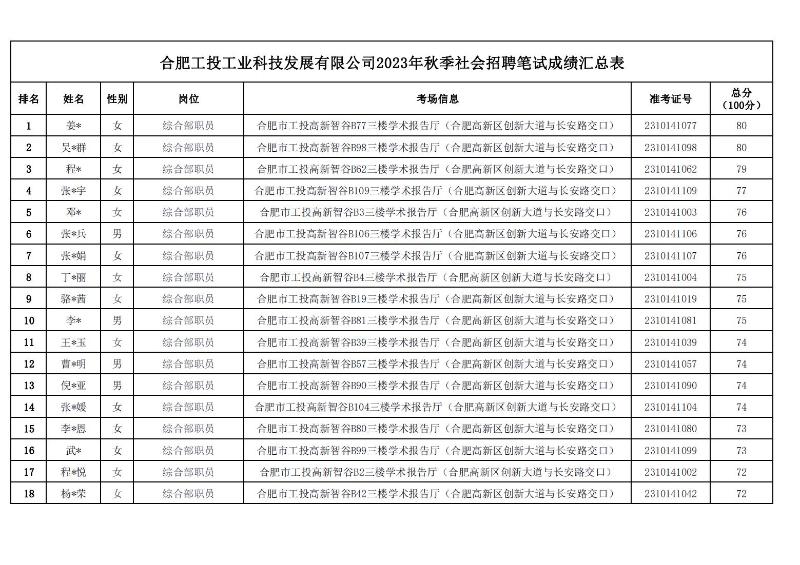 合肥工投工业科技发展有限公司2023年秋季招聘笔试成绩公示