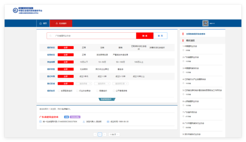 请问我单位获得的广东省建筑装饰工程优秀建造师荣誉颁发单位放广东省建筑业协会在“全国社会组织信用信息公示平台”上的查询截图是否认可?