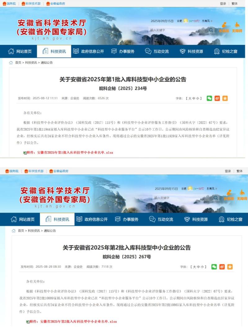 近日,安徽省科技厅公示2025年第一批、第二批入库科技型中小企业名单,工业科技119家园区企业入选。这一成绩充分体现了工业科技在培育创新主体、服务区域科技产业发展方面的显著成效。