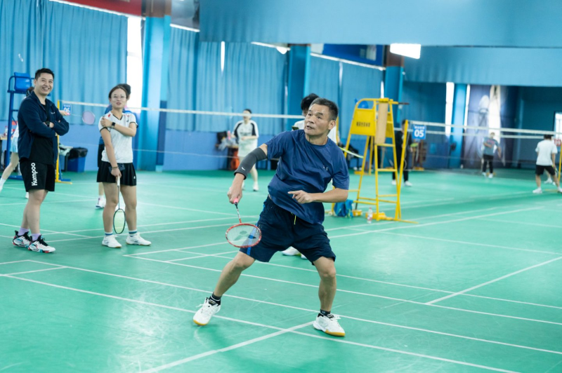 羽毛球赛场同样开启精彩对决,男单、女单、混双三个项目同步角逐。裁判哨声刚落,白色羽毛球便如闪电般穿梭赛场,划出一道道凌厉弧线。选手们脚步生风,跨步救球、滑步调整、跃起扣杀,整套动作行云流水。全程观战的裁判长刘教练赞叹不已:“园区白领们的专业水准令人惊喜,不少选手在力度和角度控制上堪比职业运动员!”